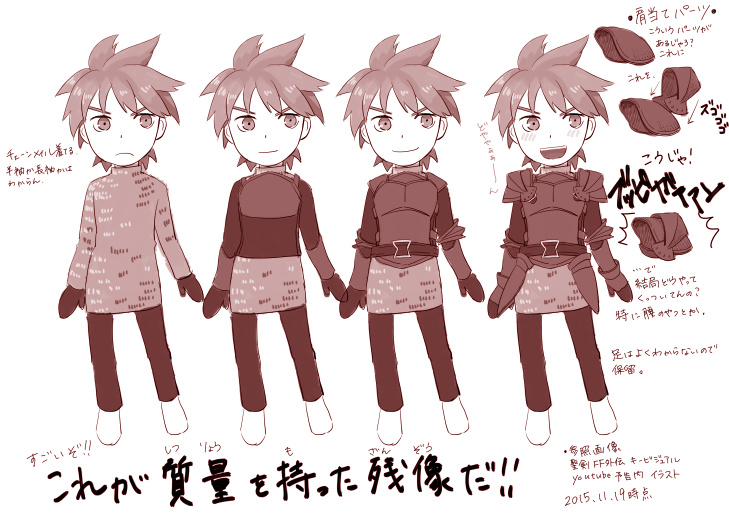 キービジュアルだと上腕当てがチラ見えしてるのですが、デフォルメイラストには上腕当てがないんですよね。そこら辺もわかったら詰めていきたい所存。
